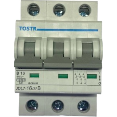 jmenovitý proud 16 A, jmenovité napětí AC 230/400 V, zkratová vypínací schopnost 6 kA, vypínací charakteristika B, 3pól, typ napětí AC, svorky šroubové