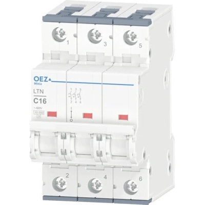 Jistič OEZ LTN-16C-3 - In 16 A, Ue AC 230/400 V / DC 216 V, charakteristika C, 3pól, Icn 10 kA