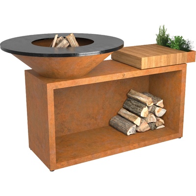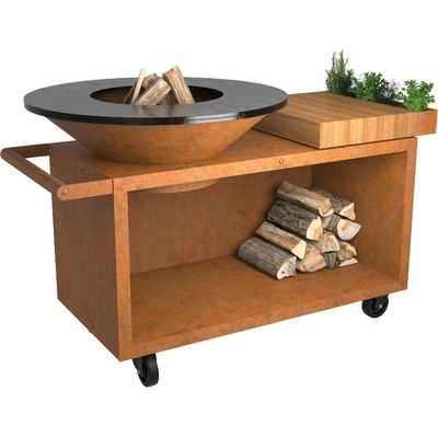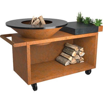 OFYR Island Corten 100 PRO je mobilní verze modelu OFYR Island 100 s hlubším podstavcem. Jeho součástí je masivní dřevěná pracovní deska pro přípravu jídla, praktická přihrádka na kuchyňské náčiní a prostor pro skladování dřeva pod pracovní deskou. Pracovní deska je z...
