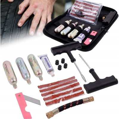 Opravná sada bezdušových pneumatik. Balení obsahuje: 2x trn 2x bombičky s CO2 5x knoty 1x nástavec na ventilek Balení: sada