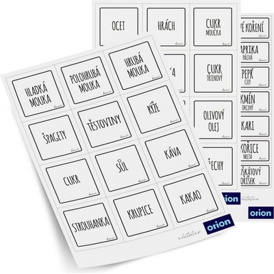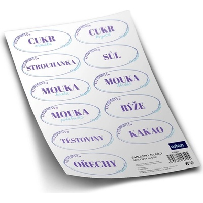 Orion Samolepky na dózy CZ 11 Bílomodré oválné nálepky ve vesnickém stylu se hodí na potravinové dózy a boxy. Každá z nich má již vlastní popisek. Najdete zde například...