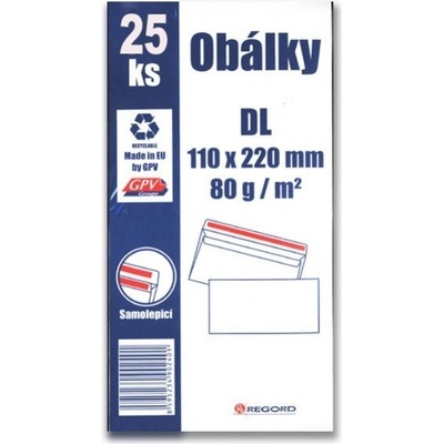 Obálka DL samolepicí 25 ks 80 g/m2 110 x 220 mm.