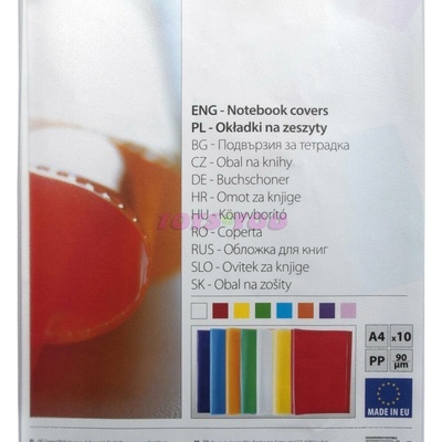Obaly na sešity formátu A5. Povrch zrnitý, tloušťka 90 µm. Balení 10 ks, každý kus s ean kódem.