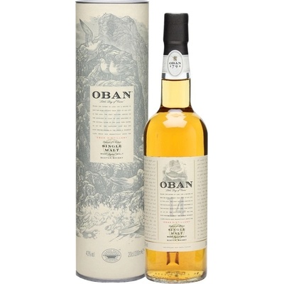 Oban 14-letá jednosladová Single malt whisky, v níž najdeme závan moře a vůni rašeliny, lahodné, skvěle vyvážené chuti s náznakem mořských řas. Suchá whisky, v závěru kouřová a slaná dochuť. Oban je výrobce whisky na Vysočině, který leží na okraji západního pobřeží...
