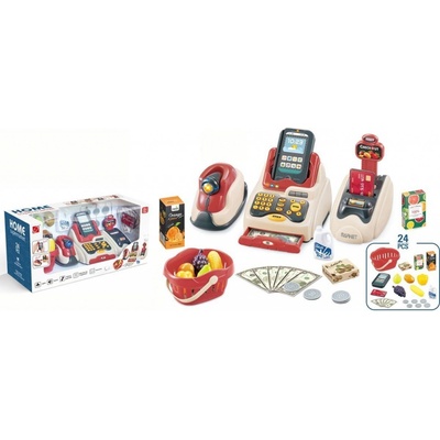 Elektronická pokladna jako ve skutečném obchodě se světlenými a zvukovými efekty! Zahrnuje čtečku zboží, platební terminál, skener zboží, funkční kalkulačku a příslušenství....