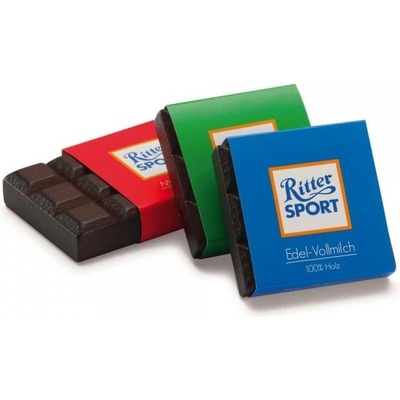 Čokoláda Mini Ritter Sport ze dřeva, 3 kusy. Rozměry (d x š x v) cm / hmotnost: 4,5 x 4,5 x 4 / 55 g. Určeno pro věk: 3+. Dřevěné ovoce, zelenina, potraviny a drogerie na hraní,...