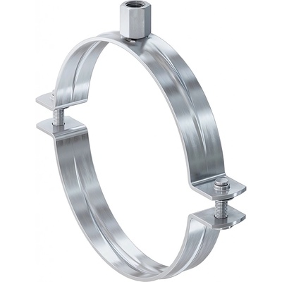 Vzduchotechnická objímka - ⌀ 100 mm (průměr potrubí), bez gumy, s rychlouzávěrem, dvoušroubová objímka, k upevnění kruhového potrubí nebo flexibilních hadic, materiál pozink....