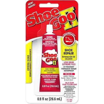 Shoe Goo ll je lepidlo vyrobené s použitím prémiové polymerové technologie. Je křišťálově čirý a nabízí vynikající odolnost proti UV záření a vodě. Trvale opraví/ochrání...