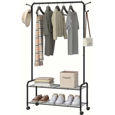 Pojízdný věšák na oblečení, stojan na šaty na kolečkách s odkladačem na boty nebo krabice a s drátěnou poličkou, kterou lze umístit do libovolné výšky. Možnost nastavení výšky...