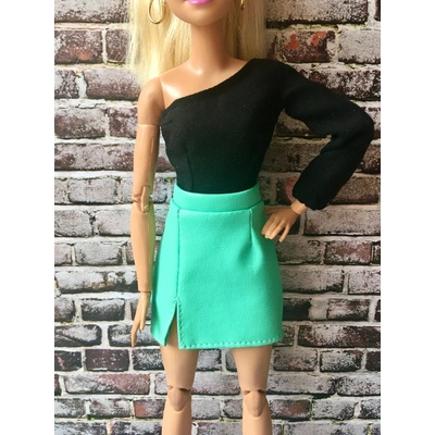 Tato úžasná sukně pro panenky má přední dělený design z krásné tyrkysové umělé kůže. Je vyrobena tak, aby byla měkká, lehká a zajistila perfektní padnutí pro panenky v měřítku...