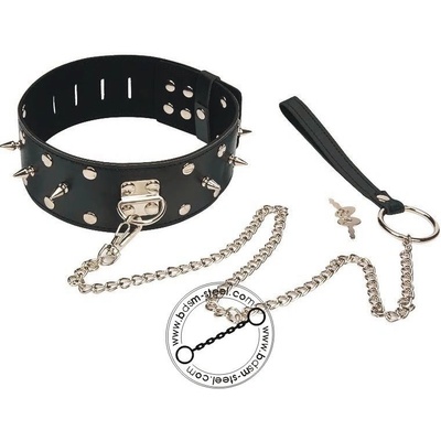 Obojek s ocelovými hroty Uzamykatelný obojek s ocelovými hroty a vodítkem. Materiál : PU kůze , kov