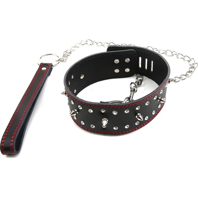 \n\nmasivní velmi kvalitní kožený obojek - vyrobeno z hovězí kůže - obojek obsahuje stylové hroty a nýty - barva: černá\n\n