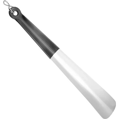Plastová obouvací lžíce v délce 25cm s očkem na zavěšení v černém provedení.
