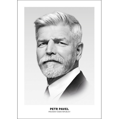 Černobílý obraz prezidenta ČR Petra Pavla rozměru 420 x 594 mm, vytištěn na kvalitním křídovém papíru vysoké gramáže 255 g/m2. Obraz je velikostně stejný jako portréty předchozích prezidentů a lze jej tedy bez nutnosti dalších úprav použít do původních rámů.