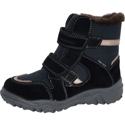 Dívčí vyšší zimní boty se zapínáním na dva suché zipy. Svršek je vyroben z pravé kůže a TEX membrány, která zajistí nepropustnost obuvi. Obuv je zateplená a má vyjímatelnou,...