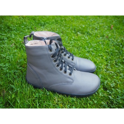 Kotníčkové barefoot kožené zimní boty s vyjímatelnou fleecovou stélkou. Boty mají měkký opatek a praktický zvýšený gumový okop. Zapínání na dva suché zipy. Boty jsou zateplené...