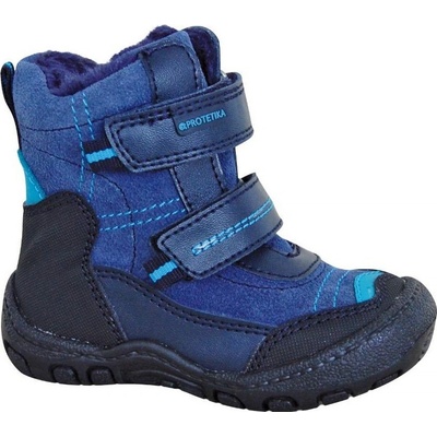 Chlapecká obuv Protetika má modrý svršek vhodně zkombinovaný se šedou. Je v kombinaci kůže a textilu, ale pod tímto svrškem má membránu Pro-Tex, takže je odolná proti vlhkosti...