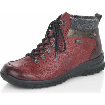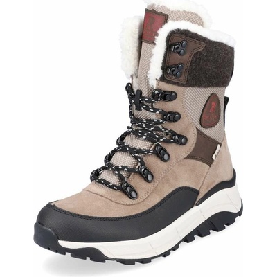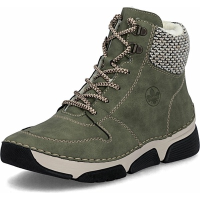 Dámské zateplené kotníkové boty značky Rieker na bytelné podrážce se šněrováním. Jednoduchý střih s ozdobným šněrováním po straně je ideální do nepříznivého počasí i k běžnému...