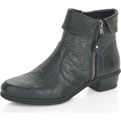 Tento model bot RIEKER je skutečnou lahůdkou pro každou milovnici módy! Černý svršek v kombinaci s originálními dekoracemi a jemným nařasením v oblasti nártu dodává obuvi...
