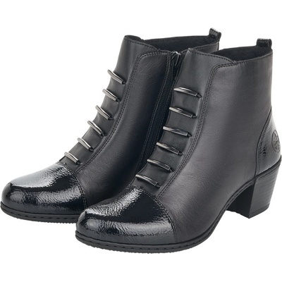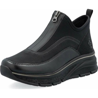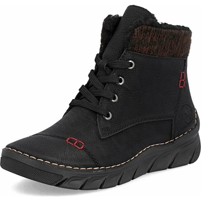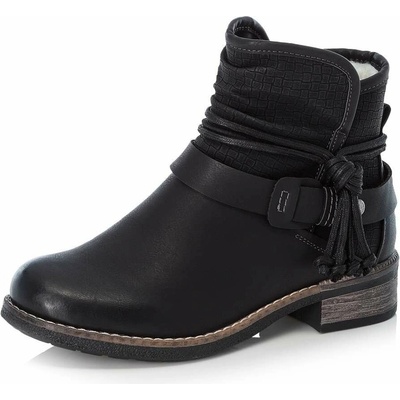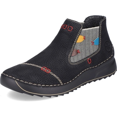 RIEKER 51592-00 black, dámská kotníková obuv Dámské kotníčkové boty v černé barvě ozdobené barevnými detaily a šitím. Svršek obuvi je vyroben ze syntetické kůže. Podšívka je...
