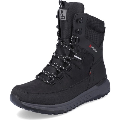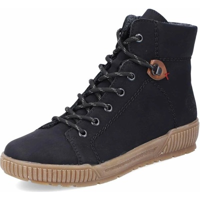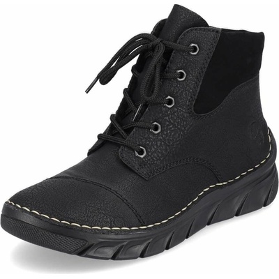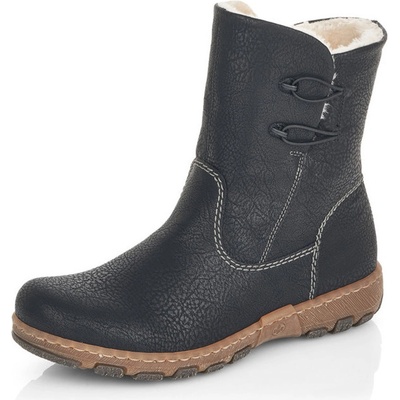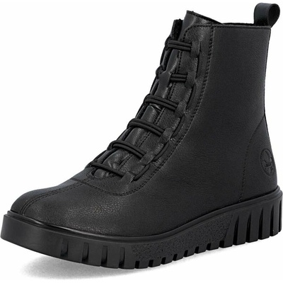 Dámské boty značky Rieker. Svršek vyroben v imitaci jemně strukturované kůže, která se snadno udržuje. Vysoké šněrování je plně funkční, slouží hlavně k nastavení dle obvodu...