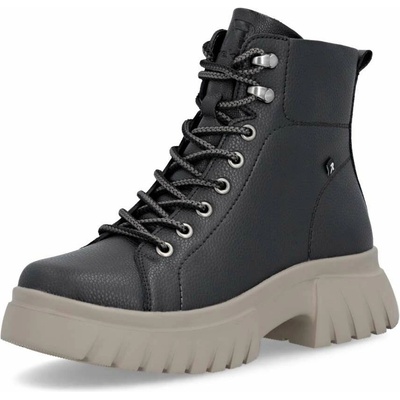 Dámské kotníkové boty značky Rieker na pohodlné platformě se šněrováním. Ozdobné prošívání a kožíšek v horní části dodává botám šmrnc.Membrána RiekerTex udrží vaše nohy v...