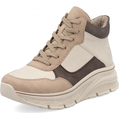Dámské kotníkové boty značky Rieker se šněrovánímm. Díky pohodlné platformě jsou ideální ke každodennímu nošení. Barevná kombinace dává botám šmrnc. Boty jsou zateplené....