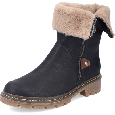 Dámské kotníkové boty značky Rieker s ohrnovacím kožíšem. Díky pohodlné platformě jsou ideální ke každodennímu nošení. Boty jsou zateplené. Podešev:Podešev obuvi je s...