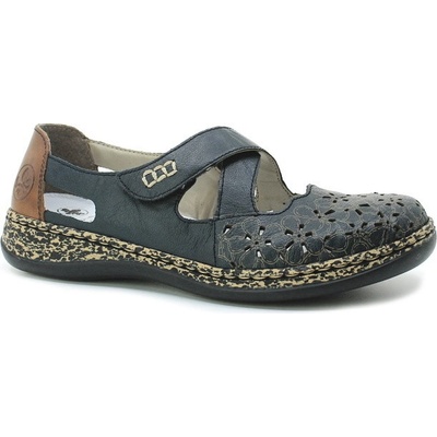 RIEKER 463H4-14 blue, dámská obuv Oblíbený model dámských letních polobotek v modré a hnědé barvě. Svršek je vyroben z pravé kůže. Baleriny mají jeden pásek se zapínáním na...