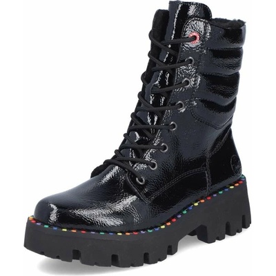 Tyto boty značky Rieker jsou skvělou volbou pro ženy, které hledají spojení módního vzhledu a komfortu. Lesklý černý svršek doplňují barevné detaily lemující horní okraj...