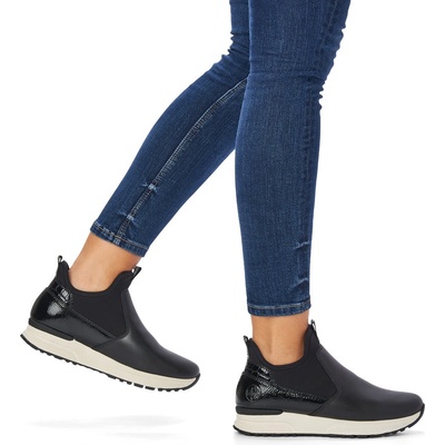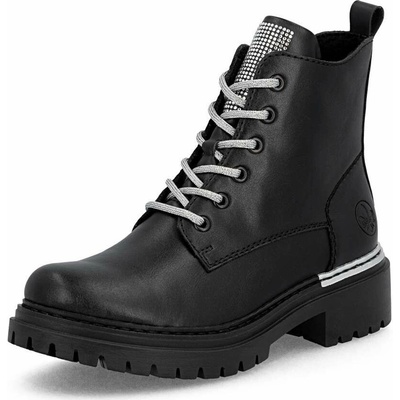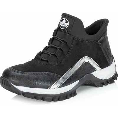 Módní styl značky RIEKER skvěle vystihuje tento model černých kotníkových bot, které zaručeně upoutají na první pohled. Výrazné lesklé aplikace a třpytivé kamínky na jazyku...
