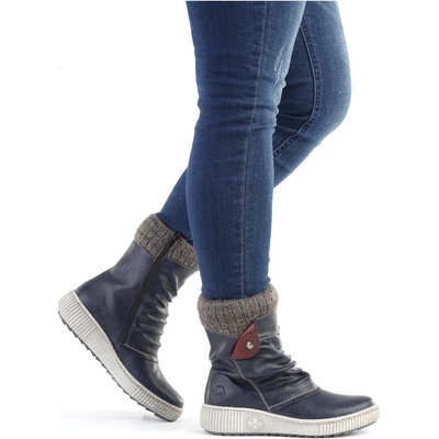 Tmavě modrý svršek těchto bot RIEKER zdobí prošívané linie, výrazný červený detail a decentní logo značky – kombinace vytvářející módní vzhled zvýrazňující půvab každé z Vás....
