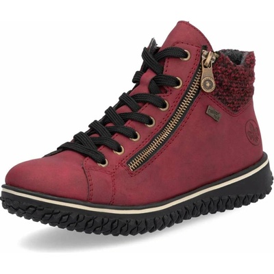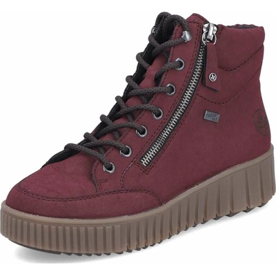 Kotníkové boty Rieker v tmavě červeném provedení svršku představují kombinaci stylového vzhledu a maximálního pohodlí. Svršek zdobí jemné linie prošití a logo značky...