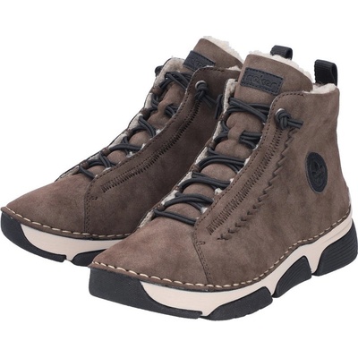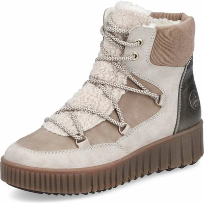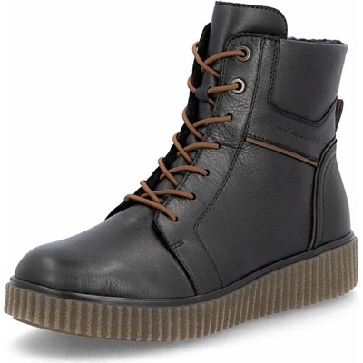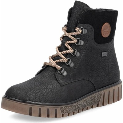 Dámské kotníkové boty značky Rieker na pohodlné platformě se šněrováním. Ozdobné prošívání a kožíšek v horní části dodává botám šmrnc.Membrána RiekerTex udrží vaše nohy v...