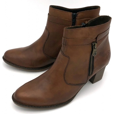 Dámské kožené kotníky značky Rieker jsou tou správnou volbou pro celodenní pochůzky v nadčasovém provedení svršku hnědé barvy. Funkční zip na vnitřní straně boty Vám zaručí...