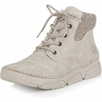Tyto kotníkové boty značky Rieker svým provedení svršku béžové barvy budou univerzálním obutím zimních dní. Nápaditý akcent je lemování horního okraje kožíškem a linie prošití...