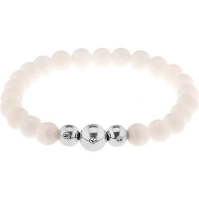 Náramek z přírodního kamene bílé barvy a ocelových kuliček navlečených na pevné gumičce.