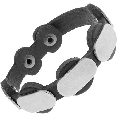 Kožený náramek černé barvy, pět spojených kruhů s jemně patinovanými velkými oválnými známkami.