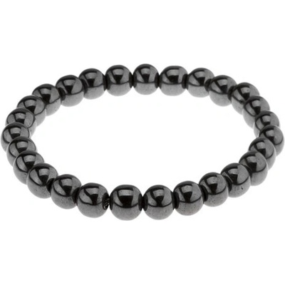 Šedočerný náramek na ruku z hematitu, kuličky s lesklým hladkým povrchem na průhledné gumičce.