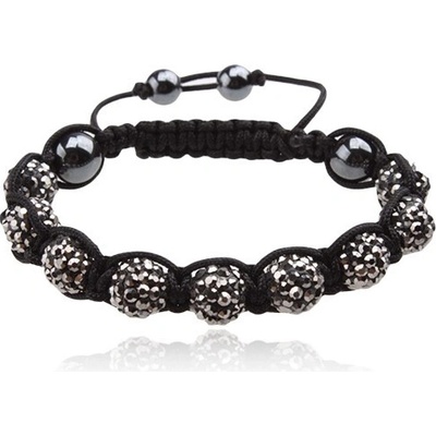 Náramek ve stylu Shamballa, zirkonové kuličky ocelově šedé barvy, hematitové korálky, šňůrka.