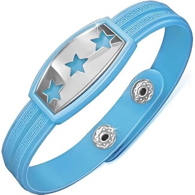 Náramek z gumy zdobený řeckým motivem a vyřezávanou ocelovou známkou.