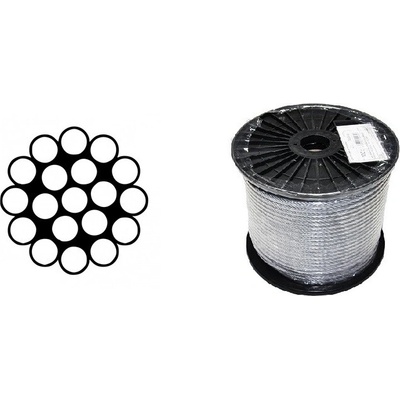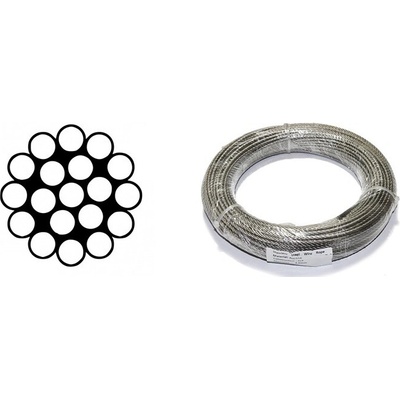 Ocelové lano jednopramenné dle ČSN 024311, DIN 3053 (1x19 drátů, pevnost 1770MPa), používá se např. jako závěsné lano pro světelné zdroje a lehká břemena v provozech a halách,...