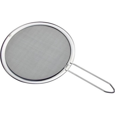 Ochranné síto zabraňující spolehlivě prskajícímu tuku, aby znečistil sporák a kuchyňskou linku. Vyrobeno z jemného kovového tkaniva s oky 0,7x0,7 mm pevně spojeného s obrubou z ocelového plechu a držadlem z ocelového drátu. Galvanicky leskle...
