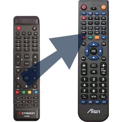 Dálkový ovladač Octagon SF4008 4K UHD Kvalitní náhradní dálkové ovládání jiného vzhledu pro Satelitní přijímač Octagon. Pod značkou ALIEN získáte kvalitní a levnou...
