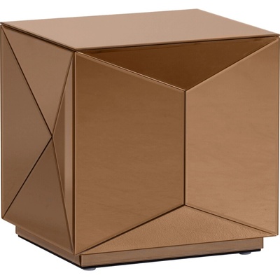 Odkládací stolek Glintz zaujme především svou neobyčejnou deskou ze zrcadlového skla, která do interiéru vnáší nečekanou hloubku a hru podmanivých odlesků. Bronzově hnědý korpus...