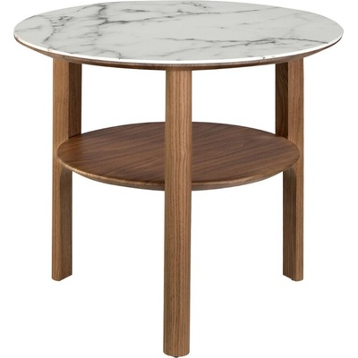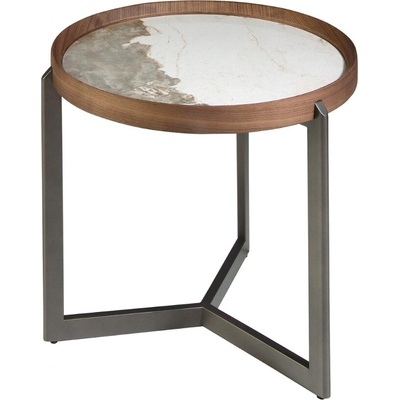 Jemná kombinace bílého porcelánu s mramorovým dekorem a ořechové dýhy dělá z tohoto odkládacího stolku skutečný designový šperk. Kulatá deska s jemnými šedými žilkami dodá...