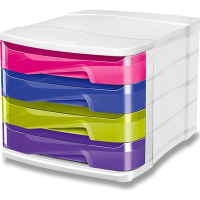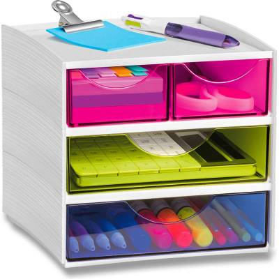 Atraktivní zásuvkový box s duhovými zásuvkami rozzáří každý pracovní stůl. Přehledné uložení drobných kancelářských potřeb do prostorných barevných zásuvek. Polootevřené...