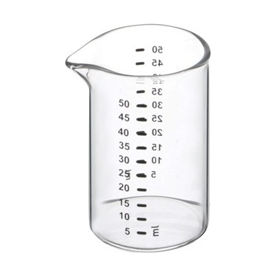 Objem: 50 ml vyrobeno z odolného borosilikátového skla stupnice a nalévací hubička