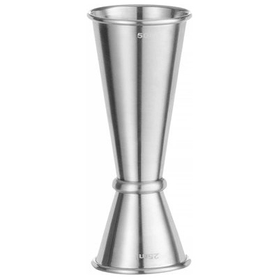 Tato nerezová odměrka nápojů, základní součást barmanského vybavení, je dvoustranná a slouží k odměření 25ml a 50ml.
