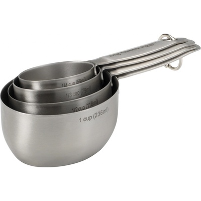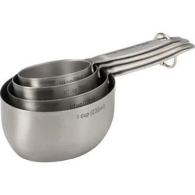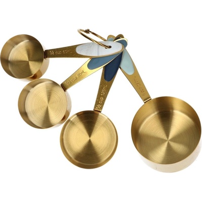 Obsahuje 1 šálek, 1/2 šálku, 1/4 šálku a 1/3 šálku. Vyrobeno z nerezové oceli zlaté lžíce: silikonové rukojeti